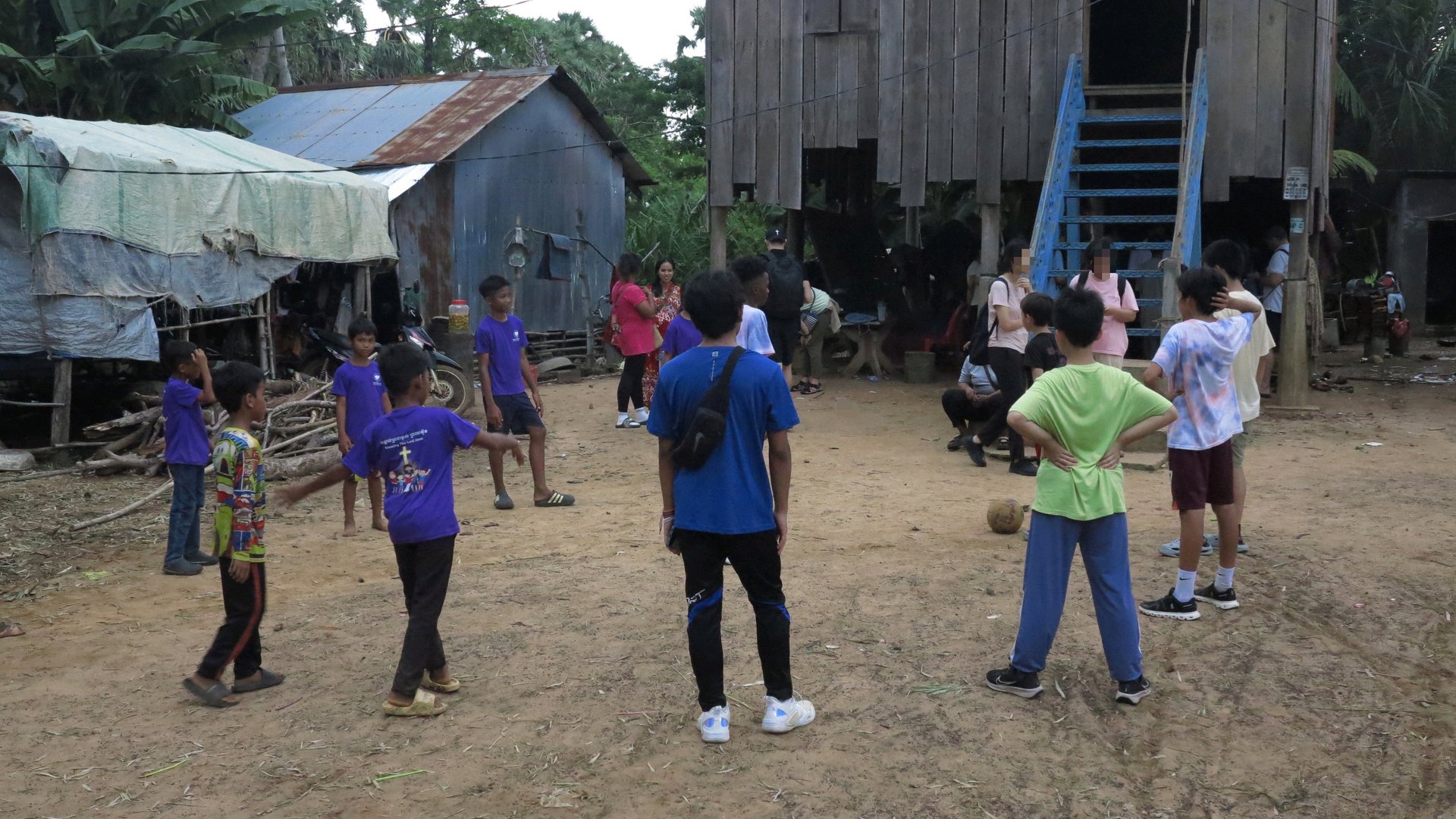 Picture of the outside of the family's house (on the left). The team and I were playing football with the local kids.