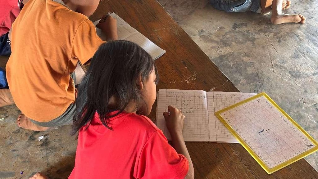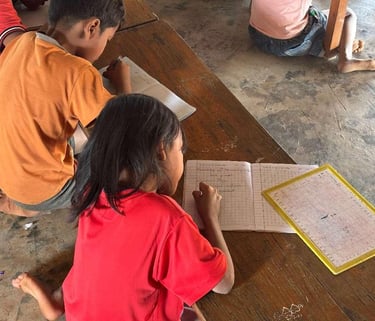 Elementary schools in Cambodia have half-day classes which end at 10:30 a.m. After that these kids rush home for dinner and arrive at the church before 1:00 p.m. to have lessons in the Bible, English, Cambodian and other subjects delivered by Savy.