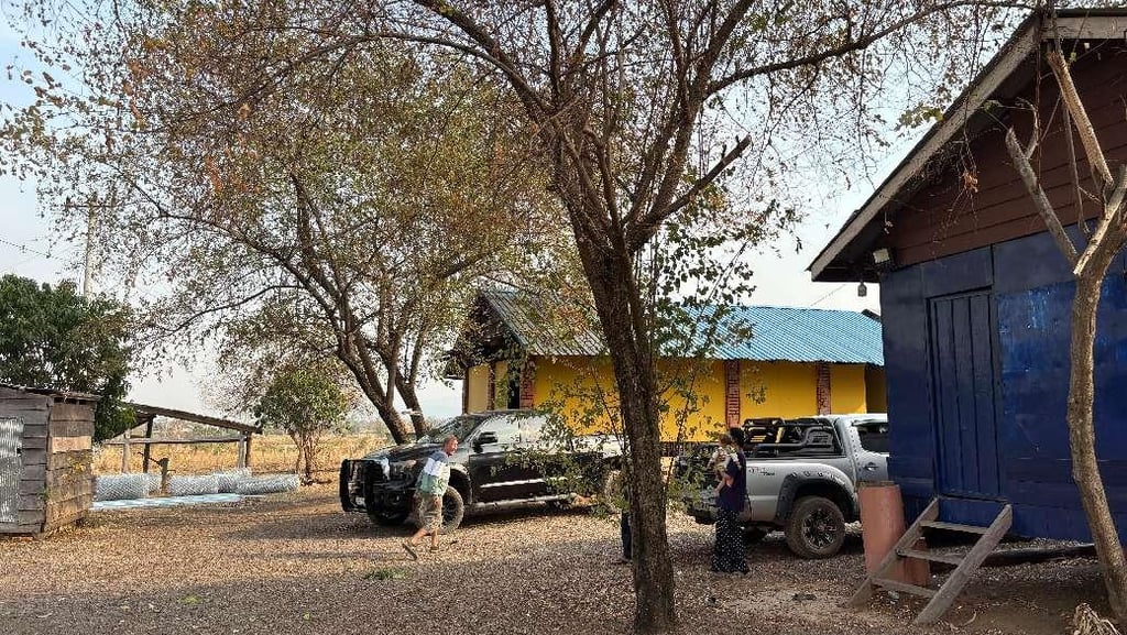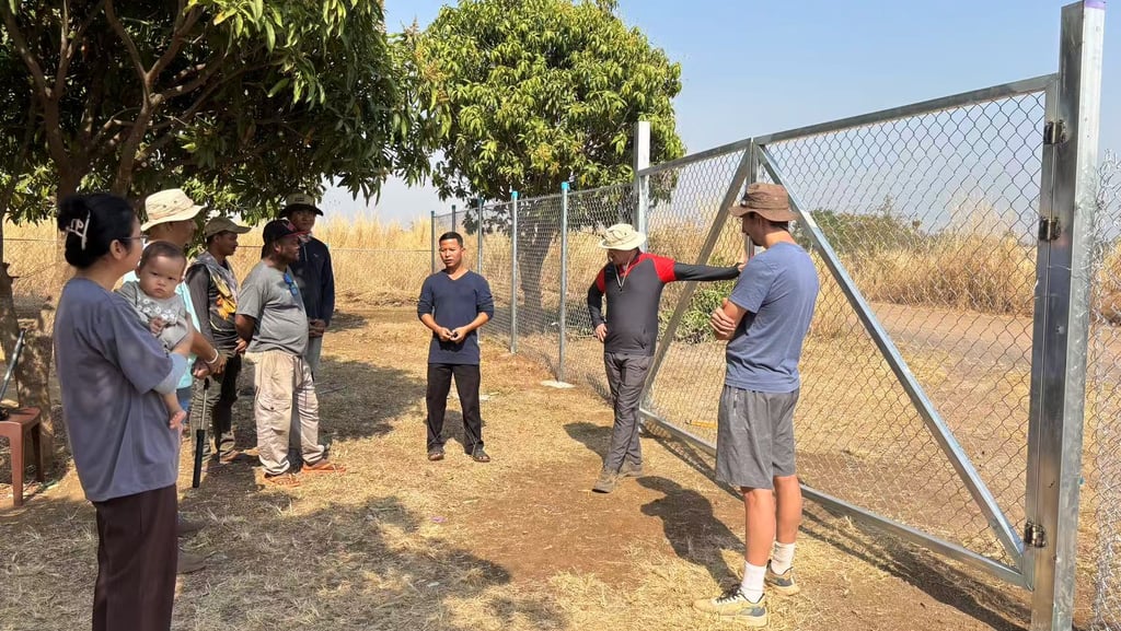 The squad of 4 brothers arrived in Cambodia on different flights to rendezvous before going to the church in this village to support their fence building project.