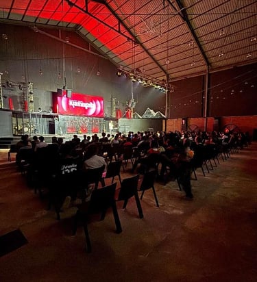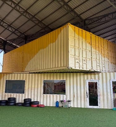 I took this photo from the top floor of their office building. Under the huge roof, it is easy to identify the basketball court, rock climbing facilities, cafeteria, plaza, and a hall for both worship and classrooms. In the distance, there are soccer and volleyball fields. On the right there are various classrooms in the form of containers. Next to it is a tent for service.